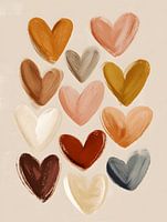 Een rustige compositie van geschilderde harten in warme, natuurlijke tinten. Dit werk straalt zachtheid en verbondenheid uit en past mooi in een slaapkamer, kinderkamer of serene woonruimte.