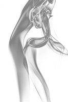 Rookslierten van brandend wierook, tegen een witte achtergrond, abstract weergegeven.