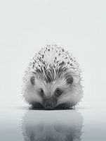 "Zachte Nieuwsgierigheid" is een ontroerend beeld van een egel, wiens fijne stekels en doordringende ogen een sfeer van verwondering en bedachtzaamheid uitstralen. De monochrome tinten benadrukken de textuur van de stekels en de zachte gelaatstrekken, terwijl de weerspiegeling op de ondergrond een extra dimensie van diepte toevoegt. Dit portret straalt een tedere intimiteit uit, waardoor het een lieflijke toevoeging is aan elke ruimte die een gevoel van rust en verwondering verlangt. Het is een uitstekende keuze voor wie waardeert hoe de natuurlijke wereld, zelfs in het kleinste wezen, zowel mooi als intrigerend kan zijn.