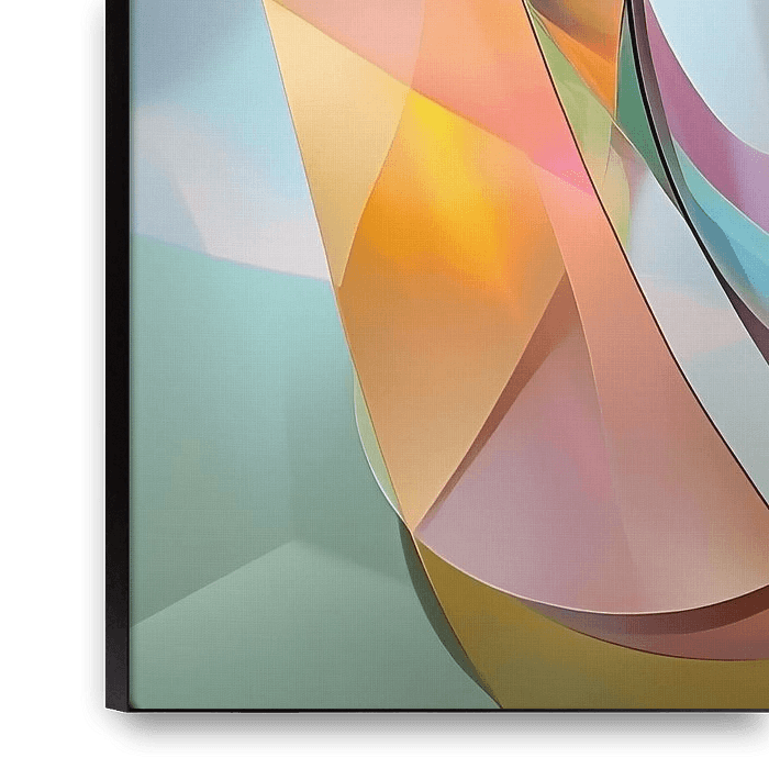Zachte Pasteltinten Abstracte Kunst - Dit abstracte schilderij toont een complex samenspel van overlappende, gladde, doorzichtige vormen in een scala aan pastelkleuren, waarbij de zachte curven en tinten samenvloeien in een rustgevend visueel spektakel.