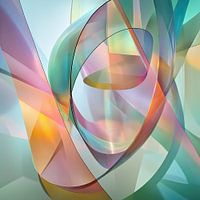 Zachte Pasteltinten Abstracte Kunst - Dit abstracte schilderij toont een complex samenspel van overlappende, gladde, doorzichtige vormen in een scala aan pastelkleuren, waarbij de zachte curven en tinten samenvloeien in een rustgevend visueel spektakel.