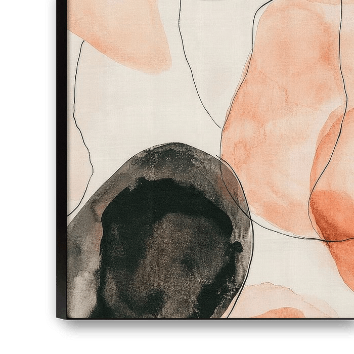 Zachte, organische vormen in zachte aardetinten verlevendigen de kamer en creëren een harmonieuze sfeer. De vloeiende lijnen en pastelkleurige accenten geven het kunstwerk een lichte, moderne touch. Perfect voor een woonkamer, waar het een ontspannen sfeer creëert en aanzet tot stijlvolle gesprekken. Een visueel genot dat rust en creativiteit uitstraalt.