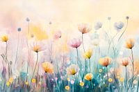 Laat je betoveren door deze delicate voorstelling van een bloemenweide, uitgevoerd in zachte pasteltinten die een gevoel van rust en sereniteit oproepen. Het schilderij toont prachtige wilde bloemen die zachtjes dansen in een frisse bries, terwijl een diffuus licht de scène verlicht. Perfect voor het creëren van een rustige en sfeervolle omgeving in je huis of werkplek. Dit kunstwerk past uitstekend in zowel moderne als klassieke interieurs en is een mooie keuze om een vleugje natuur naar binnen te brengen.