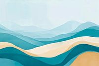 Zachte golven in harmonieuze blauwtinten, afgewisseld met warme zandkleuren, creëren een gevoel van rust en ruimte. Dit gestileerde landschap brengt een bijna dromerige sfeer over en nodigt uit om te ontspannen. Ideaal voor de slaapkamer of een rustige leesplek in de woonkamer om een oase van rust te creëren.