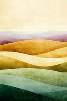 Zachte golven van rustgevende aardetinten en pasteltinten ontvouwen zich naar de horizon en nodigen je uit om te ontspannen. Het harmonieuze kleurenpalet creëert een vredige sfeer die ideaal is voor de slaapkamer. Hier kunnen de rust en sereniteit van de foto je dromen naar nieuwe hoogten tillen.