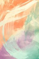 Zachte pasteltinten smelten samen tot een harmonieus kleurenschema dat lichtheid en rust uitstraalt. Dynamische penseelstreken lopen speels in elkaar over, terwijl de kleurovergangen een dromerige sfeer creëren. Ideaal voor de slaapkamer of woonkamer om een uitnodigende, ontspannen sfeer te creëren en de kamer te verrijken met zachte elegantie.