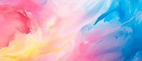 Zachte kleuren dansen in harmonieuze golven over het doek, terwijl delicate roze- en blauwtinten worden gecombineerd met helder geel. Dit levendige kleurenspel roept een sfeer op van lichtheid en creativiteit, perfect voor een moderne woonkamer die inspiratie en rust uitstraalt. Ideaal om dromen en ideeën te laten stromen.