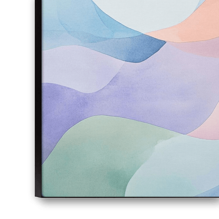 Dit ontwerp straalt rust en subtiliteit uit met zachte golvende lijnen en harmonieuze pastelkleuren. Ideaal voor interieurdecoratie in ruimtes waar een kalmerende en serene sfeer gewenst is, zoals slaapkamers of woonkamers. De aquareltechniek geeft een gevoel van verfijning en tijdloosheid. De organische vormen en zachte overgangen tussen kleuren maken het een veelzijdig ontwerp dat zowel in moderne als klassieke interieurs past. Perfect voor gebruik als muurdecoratie of achtergrond voor diverse creatieve projecten.