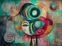 Het achtste werk in de serie "Silent Resonances" straalt een zachte harmonie van kleuren en vormen uit en vertegenwoordigt de stille ontmoeting van innerlijke en uiterlijke werelden. De kronkelende cirkels en spiraalvormige elementen in zachte tinten turquoise en roze symboliseren de cyclische aard van gedachten en emoties, die…