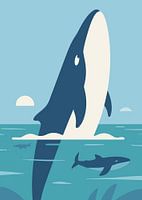 Wees getuige van een moment van pure vreugde als een prachtige walvis het oceaanoppervlak doorbreekt en naar de hemel springt. Deze eenvoudige maar krachtige illustratie vangt de enorme omvang en speelse geest van deze vriendelijke reuzen. Een sereen en opbeurend werk dat het wonder van de zee naar je interieur brengt.
