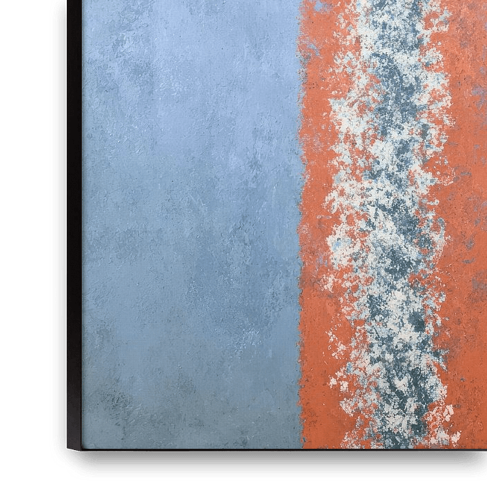 Deze minimalistische abstracte kunstwerk in zachte koraal- en lichtblauwtinten brengt rust en verfijning in je interieur. De subtiele compositie en zachte kleurcontrasten maken dit werk tot een ideale wanddecoratie voor moderne woonkamers, Scandinavisch ingerichte slaapkamers of een serene kantoorruimte. Het verfijnde lijnenspel en de…