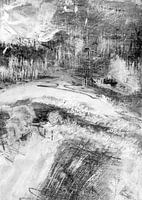 Minimalistische verfstreken, rijke textuur en dynamische compositie.
