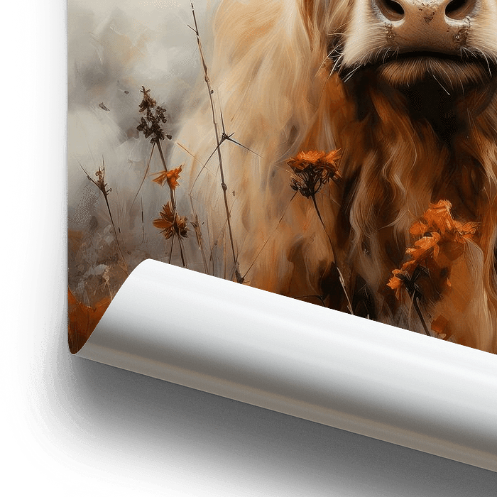 Dit prachtige fine art kunstwerk toont een Schotse Hooglander in zachte oranje tinten, waardoor een sfeer van warmte en rust ontstaat. De majestueuze uitstraling van de Hooglander is vastgelegd met oog voor detail en precisie. Dit kunstwerk past perfect in een landelijk, rustiek of natuurlijk geïnspireerd interieur. De lichte en oranje…