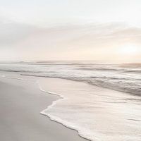 Een zachte ochtendlucht kust de horizon terwijl de golven zachtjes over het zachte zand glijden. De fijne glinstering van het water weerspiegelt het delicate licht van de zon en creëert een sfeer van rust. Een harmonieuze melodie van zacht geruis en een koel briesje verleent dit kustpanorama een tijdloze elegantie.