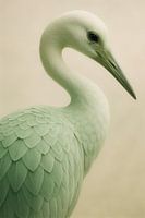 Deze dromerige close-up van een kraanvogel in pasteltinten vangt rust en verfijning in één beeld. De subtiele details van de veren en het zachte kleurpalet maken dit kunstwerk een stijlvolle blikvanger voor elk interieur.
