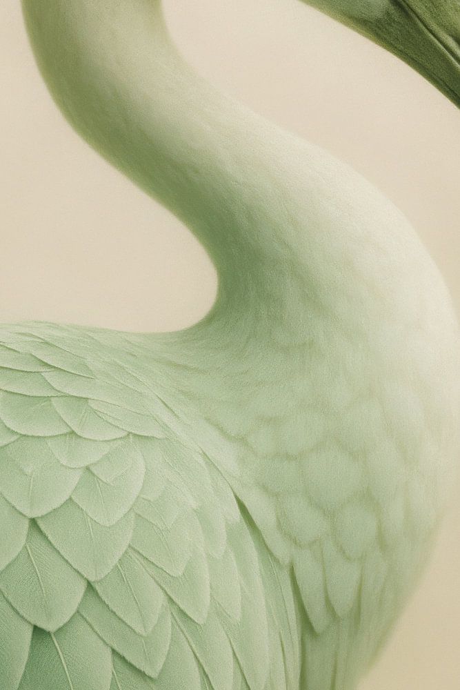 Deze dromerige close-up van een kraanvogel in pasteltinten vangt rust en verfijning in één beeld. De subtiele details van de veren en het zachte kleurpalet maken dit kunstwerk een stijlvolle blikvanger voor elk interieur.