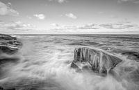 Een dromerig kusttafereel in zwart-wit. Uit La Jolla, Californië, VS.