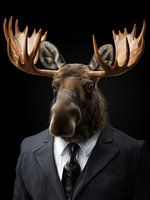 Deze antropomorfe afbeelding is meer dan alleen een humoristisch beeld - het symboliseert kracht, waardigheid en natuurlijke leiderschapskwaliteiten. De directe blik van de eland straalt zelfvertrouwen uit en maakt duidelijk dat echte leiders ook in de natuur te vinden zijn.