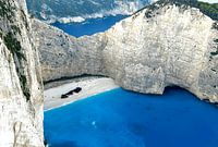 Het uitzicht op de scheepswrakbaai van Zakynthos van bovenaf is iets unieks dat je nooit meer kunt vergeten. Maar je kunt deze foto aan je muur hangen en de herinneringen levend houden.