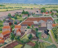 Zalk vanaf de toren rond 1960 vanaf een zwart wit foto. Ben in dit dorp geboren en 16 jaar gewoond. acryl op canvas. in de achtergrond zie je de IJssel Orgineel verkocht aan een Zalker