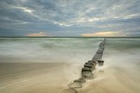 Buhnen op het strand van de Baltische Zee met een stormachtige avondlucht