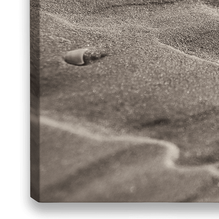 De sporen van zee zijn te vinden in het zand op het strand.