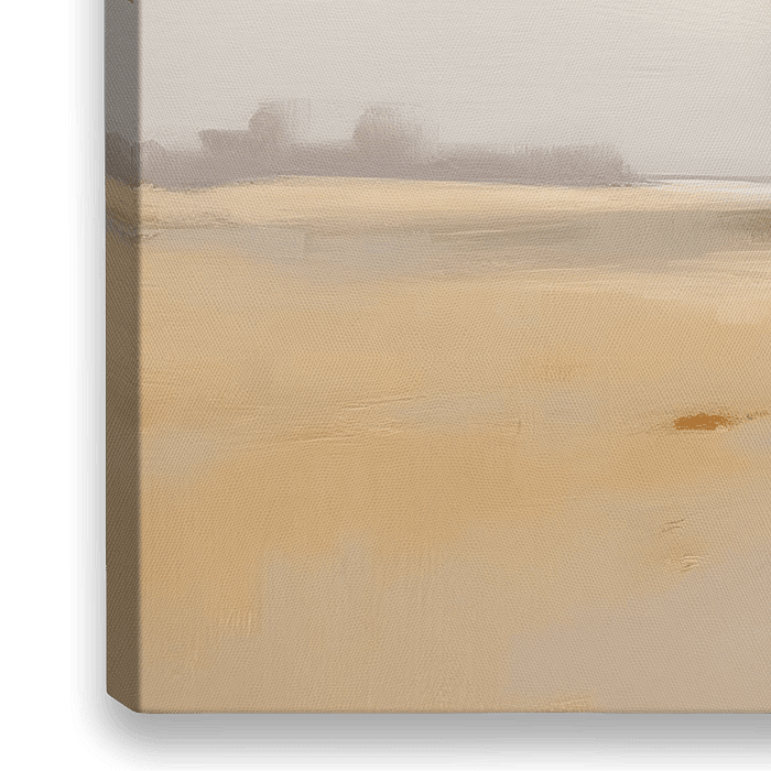 Zand Schilderij met rustige beige kleuren: Serenity's Reverie - een landschapsschilderij met als thema rust en schoonheid van eenvoud. Rustige beige en pastel kleuren geven rust en kalmte.