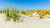 Een zonnige dag zonder voetstappen op de zandduinen met duingras op het Nederlandse Waddenzee-eiland van Terschelling, onderdeel van de provincie Friesland, Nederland.