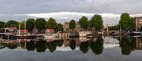 Amsterdam The Netherlands. On a summers morning the canal houses of the Zandhoek are reflected in perfect symmetry in the water