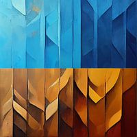 Dit abstracte kunstwerk is een fantastische manier om jouw huis of kantoor een vleugje moderne elegantie en rust te geven. De geometrische opbouw van horizontale en verticale vlakken is een prachtig voorbeeld van moderne kunst en design. De zachte beige en blauwe tinten creëren een rustgevende sfeer die een warm en ontspannen gevoel geeft, terwijl de bruine vlakken zorgen voor een natuurlijke uitstraling en een perfect contrast vormen met de andere kleuren.