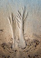 Het lijkt op twee bomen met zijn takken. In werkelijkheid is dit een resultaat van eb en vloed. Het terugwijkende water laat soms de mooiste vormen na in het zand. De foto is genomen aan het strand van Terschelling