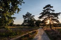 Heide landschap op een late zomeravond in het laatste licht van de zon