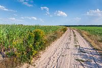 Zandpad door akkerland op de Drentse Hondsrug tussen Midlaren en Zuidlaren. Pieterpad LAW 9, etappe Groningen -Zuidlaren. Deze foto is gemaakt in de Zomer van 2018