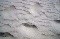 Als het stormt langs de kust ontstaan er nieuwe kleine zandheuveltjes tegen de duinrand aan. De structuren die dan ontstaan blijven bijzonder, veranderen van uur tot uur en geven een abstract effect. Op deze foto zie je dat. De kunst ligt hier voor het oprapen.