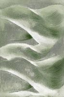 Dit werk toont een ritmisch spel van gestileerde zandduinen in vogelvluchtperspectief. De compositie bestaat uit golvende vormen die diagonaal het doek doorkruisen. De geaccentueerde groeven en lijnen geven het zandvolume een voelbare, grafische textuur. De penseelvoering is fijnkorrelig en zorgvuldig opgebouwd, met een zachte gelaagdheid in de lichte en donkere vlakken.