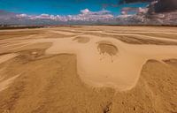 Stevige wind heeft twee kleuren zand in een patroon geblazen. Op de kop van Goeree, aan een heel breed strand.