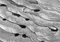 Zandplaten in de Westerschelde gefotografeerd bij laag water geven in zwart-wit een fraai grafisch beeld