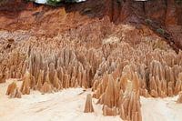 Rode zandsteenformaties, naalden, formaties in Tsingy Rouge Park op Madagaskar