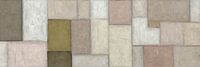 Een ritme van rechthoeken vult het doek, elk in een eigen toon van zacht beige, oudroze, leem en vergrijsd olijfgroen. De vormen lijken zorgvuldig geplaatst, maar niet star—alsof ze vanzelf in balans zijn gevallen. De lijnen zijn niet strak, maar licht vervaagd, wat het geheel een tactiele uitstraling geeft.