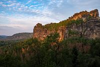 Op een lenteavond nam ik deze foto vanaf de Torstein. Links op de foto ziet u de klimrots Bloßstock.