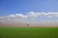 De harde wind veroorzaakte een zandstorm tussen het Fochteloërveen en Appelscha. Mooi om van een afstandje te zien, maar heel vervelend om er in te zitten. Vooral op de weg kon dit tot gevaarlijke situaties leiden.