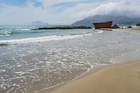 Zachte wolken drijven over de Middellandse Zee. De wind zorgt voor prachtige golven. Het is ideaal weer om te zeilen. Zeewater ontmoet fijn zand.
