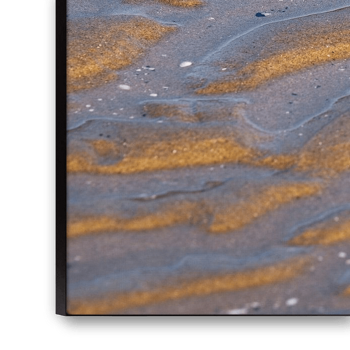 Onlangs heb ik weer een bezoek aan Katwijk aan zee (Nederland) gebracht en ik heb weer echt genoten. ik hoopte zeehondjes te zien, maar die lieten zich op dat moment niet zien. Maar er waren genoeg andere onderwerpen om te fotograferen. Allereerst hele zwermen zeemeeuwen waar ik mij heerlijk op uit kon leven. Maar daarnaast is er altijd wel wat in het zand te zien. Zijn het geen schelpen of dieren, dan vind je vaak wel de prachtigste zandstructuren. Mijn oog viel op deze strandstructuur door de mooie, golvende lijnen. Deze werden nog eens geaccentueerd door de fraai lichtval, gecombineerd met de schaduwwerking in de richels. Echt een mooi stukje abstracte kunst voor aan de muur.