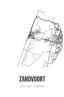 Zwart-witte landkaart, stratenplan of plattegrond van Zandvoort. Zandvoort is gelegen in de Randstad, in de gemeente Zandvoort, provincie Noord-Holland. Op de stadskaart zijn alle openbare wegen in Zandvoort opgenomen. Verder is de kaart voorzien van de coördinaten van het centrum van Zandvoort.