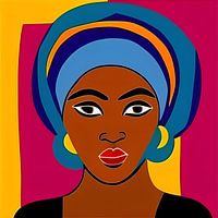 In dit opvallende kunstwerk wordt een Afrikaanse vrouw afgebeeld als een symbool van kracht en individualiteit, omringd door elementen die kenmerkend zijn voor het modernisme. De vrouw staat in het middelpunt van de compositie, stralend in haar zelfverzekerdheid en waardigheid.