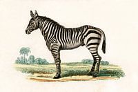 Mooie scan, van oude, antieke tekening uit Afrika. Een Zebra staand.