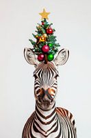 Een vrolijke blikvanger met feestelijke charme: een zebra met een glinsterende kerstboom op zijn hoofd, versierd met kleurrijke kerstballen en een gouden ster. Deze humoristische en originele afbeelding brengt levendige vreugde in elke woonkamer en tovert een glimlach op het gezicht van gasten en familie. Ideaal voor de gezellige…