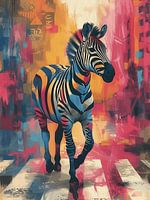 Koop dit Popart kunstwerk Zebra at a Crossing van Studio Ypie op canvas, aluminium dibond, (ingelijste) fotoprint, behang en ArtFrame, op maat geprint in Fine-Art kwaliteit.