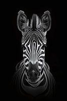 Dit indrukwekkende zwart-wit portret van een zebra met een donkere achtergrond legt de majestueuze schoonheid en elegantie van dit fascinerende dier perfect vast. De opvallende strepen van de zebra contrasteren met de donkere achtergrond en geven de foto een tijdloze en grafische esthetiek met de symmetrische beeldverdeling.