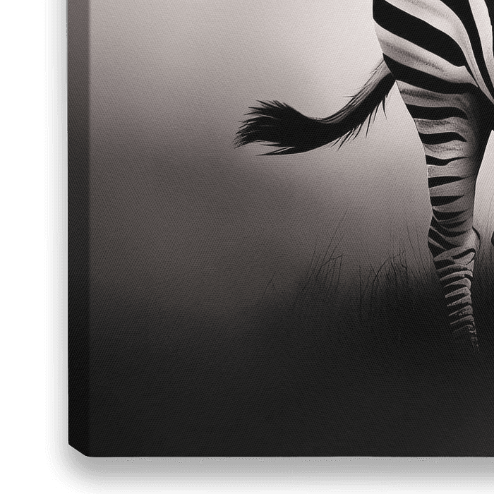 Dit prachtige kunstwerk toont een zebra die rustig door een mistig landschap wandelt. De details van de strepen en het contrast tussen zwart en wit geven de zebra een majestueuze uitstraling. De eenvoud van het ontwerp, gecombineerd met de natuurlijke schoonheid van het dier, maakt het een ideale keuze voor liefhebbers van…